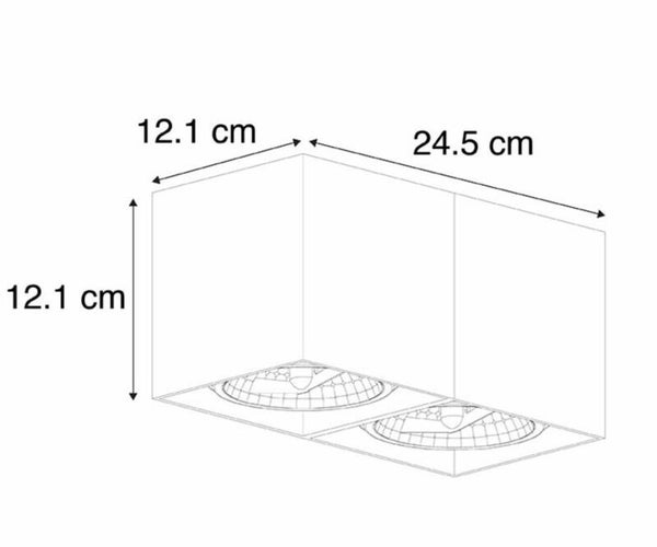 Dit design van de Box is eenvoudig, strak en tijdloos. Zeer mooi en makkelijk toe te passen in alle interieurstijlen doordat hij mat zwart is. Deze opbouwspot heeft twee kantelbare spots en wordt geleverd met twee vervangbare G9 lichtbronnen met warm wit licht van 2700 kelvin. De lichtbronnen hebben een lichtopbrengst van 3 watt en 280 lumen licht dat makkelijk dimbaar is met een externe dimmer. De spot is draai- en kantelbaar en schijnt het licht precies waar jij dat wil. Deze Box heeft een hoogte van 12,1 cm, een lengte van 24 cm en een breedte van 12 cm. De opbouwspot heeft een blinde afwerking, dit wil zeggen dat je geen schroeven in het zicht hebt na montage. Een perfecte gangbare spot voor ieder interieur!