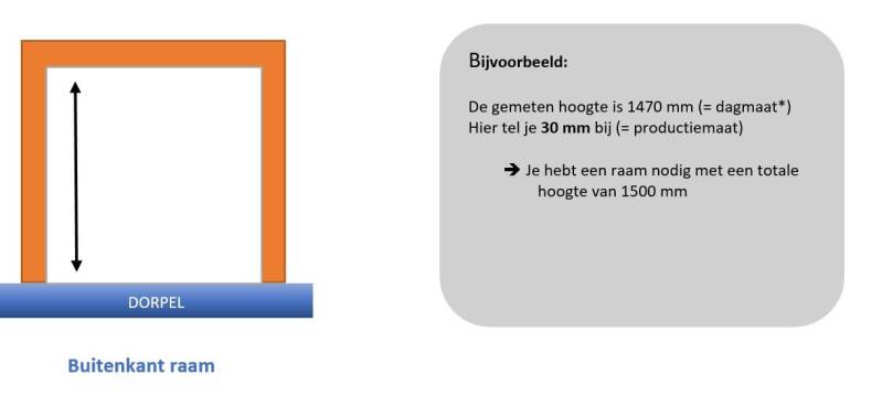 * Dagmaat = breedte tussen de bakstenen aan de buitenkant van je raam